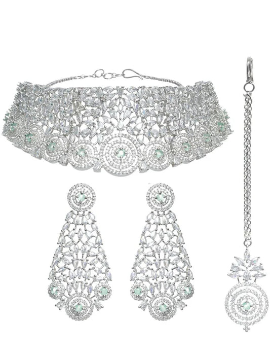 Rhodium-Plated American Diamond-Studded Jewellery Set