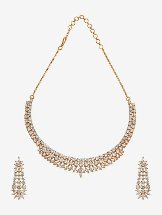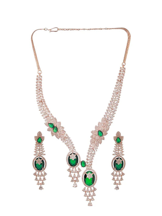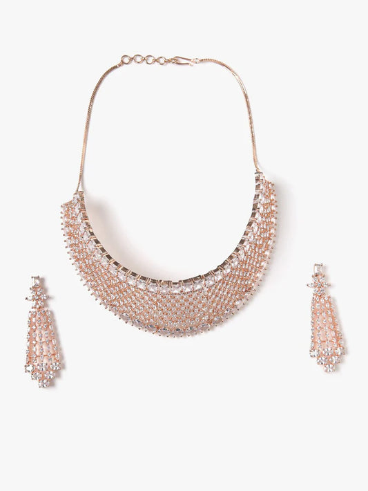 Rose Gold-Plated American Diamond-Studded Jewellery Set