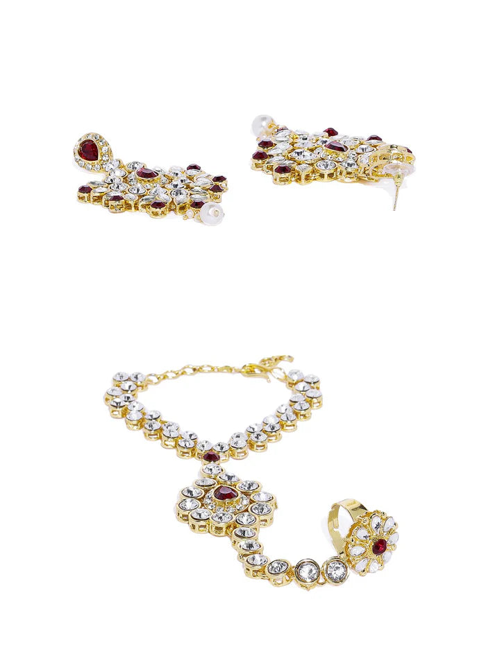 18K Gold Plated & Maroon Cubic Zirconia Studded Traditional Jewellery Set